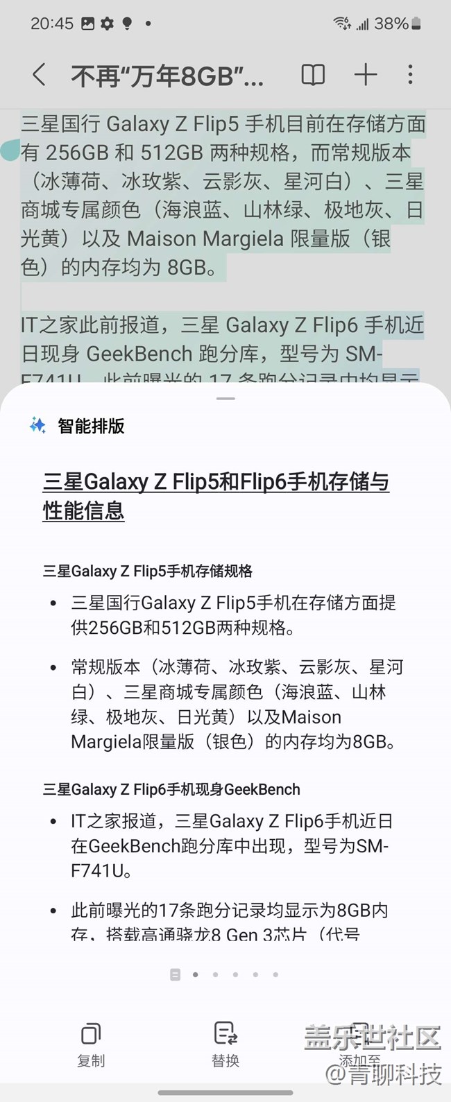 隨著智能化不斷進化,AI已經(jīng)融入到我們生活的各個方面,包括AI修圖,AI寫作等。Galaxy AI也為三星Galaxy Z Flip5帶來了更出彩的生產(chǎn)力體驗。