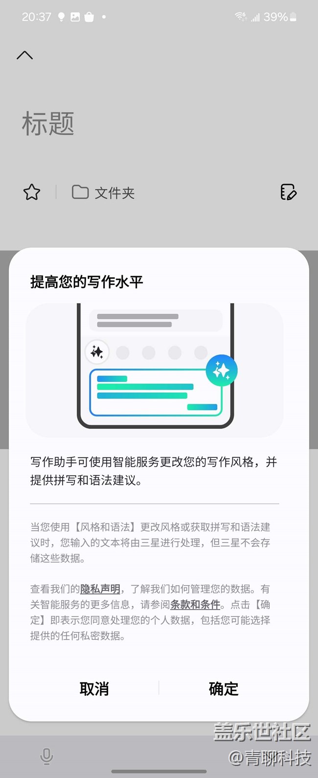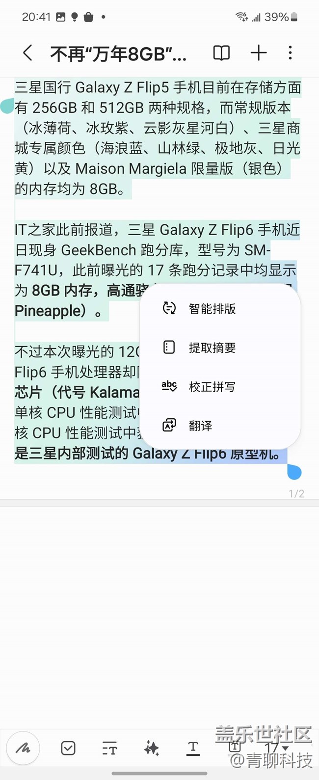 比如我們使用三星筆記寫作時,可以啟用寫作助手功能,根據(jù)文字內(nèi)容創(chuàng)建筆記模板,并智能生成便于查找的摘要和封面。還可以智能校正文章內(nèi)容,甚至可以把中文直接翻譯成任何一個國家的文字。