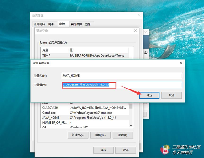 在系統(tǒng)變量里點(diǎn)擊新建,變量名填寫JAVA_HOME,變量值填寫JDK的安裝路徑,在這里就填寫“C:\Program Files\Java\jdk1.8.0_45”了。