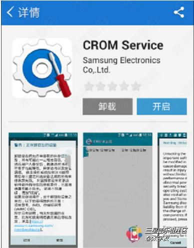 首先,我們進入三星應用商店下載CROM Service,安裝,注意:請在手機上進入三星應用商店下載,若在手機上三星應用商店未搜索到【CROM Service】,說明三星還未為此款手機提供解鎖服務,如圖