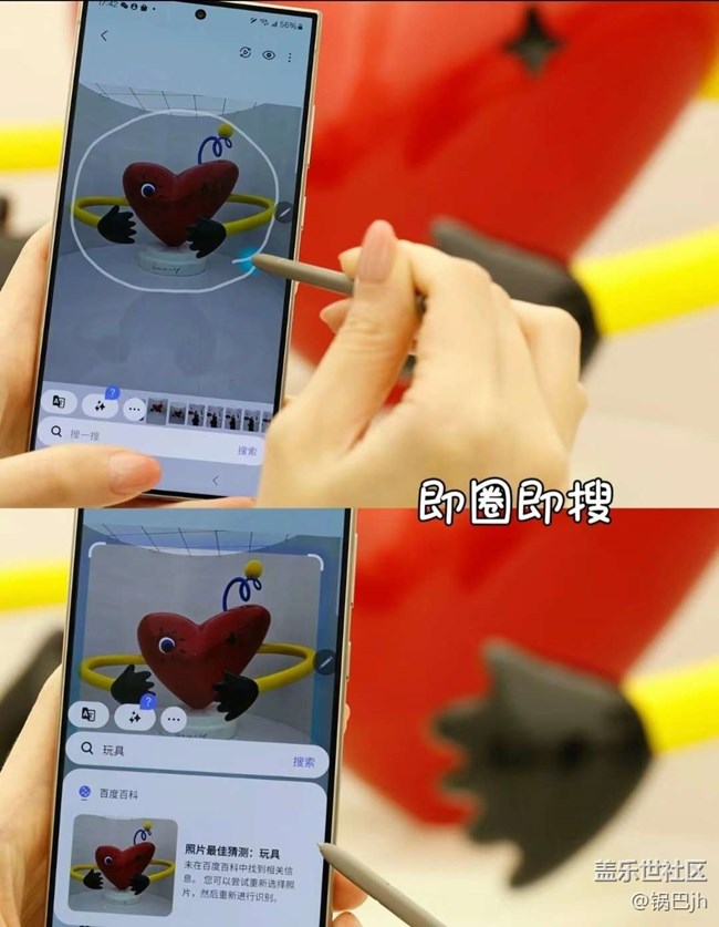 "即圈即搜" 的本能操作 其次是 "即圈即搜" 功能, 它其實(shí)與國內(nèi)手機(jī)的智慧 識屏有些類似, 但是又有一些不同。 長按導(dǎo)航條或者Home鍵,會出現(xiàn)向上的波 紋動畫效果對手機(jī)畫面識別,初步識別完成 之后, 便可對當(dāng)前的面面進(jìn)行任意的框選, 可以是文 字, 也可以是圖片。其實(shí)識別物體、文字并不是多么 稀奇的一件事情, 國內(nèi)許多手機(jī)很久之前就可以, 但 是我 更想稱贊的是S24的操作方式,它完全是按照人 們習(xí)慣本能去設(shè)計(jì)。 比如看到一個小物件很有趣, 這個時候你想要去了解 它, 或者看看在哪那里買? 這個時候, 手指就會很自然 的去 "圈選" 它, 這種操作方式完全是本能向。 而在閱讀時 ,感覺某段文字寫的很好, 想要把它復(fù)制 分享給好友, 這個時候只需要手指在那段文字輕輕一 劃, 就可以選定它、然后復(fù)制。 就是這種本能操作方式, 會讓你感覺很自然, 幾乎沒 有學(xué)習(xí)成本,但是AI所帶來的便利卻在你不經(jīng)意之間 融入其中。