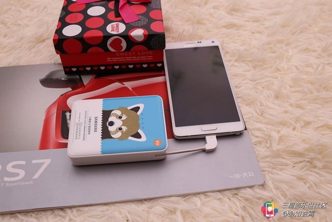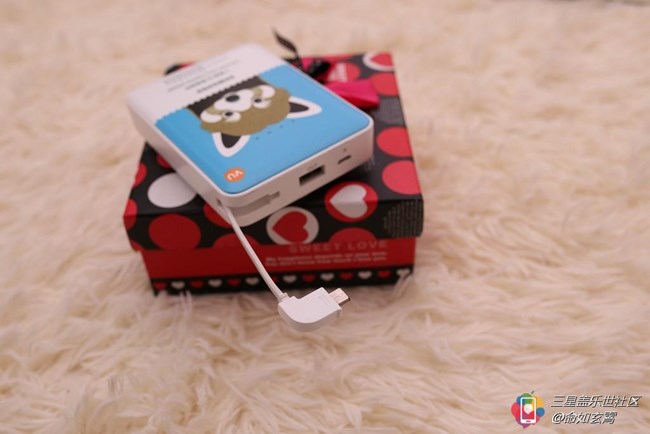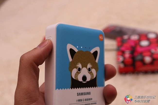 這個(gè)移動(dòng)電源是今年三星S6在成都開發(fā)布會(huì)的時(shí)候贈(zèng)送的,當(dāng)時(shí)到場(chǎng)的粉絲沒人都可以憑入場(chǎng)券隨機(jī)領(lǐng)取一個(gè),很慶幸自己拿到的是最喜歡的藍(lán)色小熊貓。
