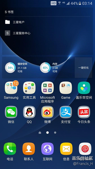 注意:我是用自帶設(shè)置禁用了一些無用的功能和程序,并關(guān)閉了曲面應(yīng)用(對我來說太雞肋了),清理后臺后才有2G以上的可用內(nèi)存的,黒域的主要功能不是禁用,而是阻止鏈?zhǔn)絾?,真的很干凈,隨著你裝的應(yīng)用的增多,內(nèi)存應(yīng)該會減少一點點!你用的功能越多,內(nèi)存就越少……