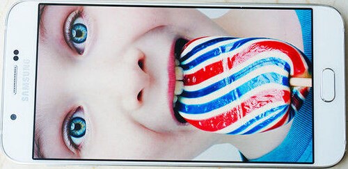 Galaxy A8擁有一塊5.7英寸的屏幕,比S6的5.1英寸大不少,而材質(zhì)也使用了三星御用的Super AMOLED。這種材質(zhì)的屏幕飽和度非常高、色彩顯示非常鮮艷。相比目前主流的IPS屏幕,Super AMOLED屏幕具備更高的色域,更好的表現(xiàn)能力。而A8屏幕的分辨率為1920x1080,ppi為386。