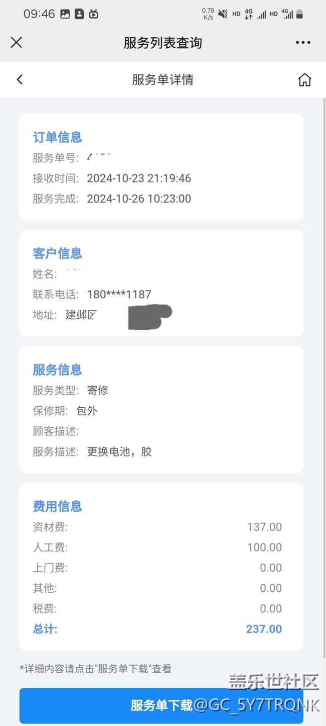 25號(hào),武漢維修點(diǎn)聯(lián)系我,詢問(wèn)一下手機(jī)情況后開(kāi)始派單維修了。號(hào)碼歸屬地顯示后,我才知道,原來(lái)是京東的。所以他這個(gè)點(diǎn)應(yīng)該是外包給京東在做。客服給了一個(gè)鏈接,付款了,總共237塊。