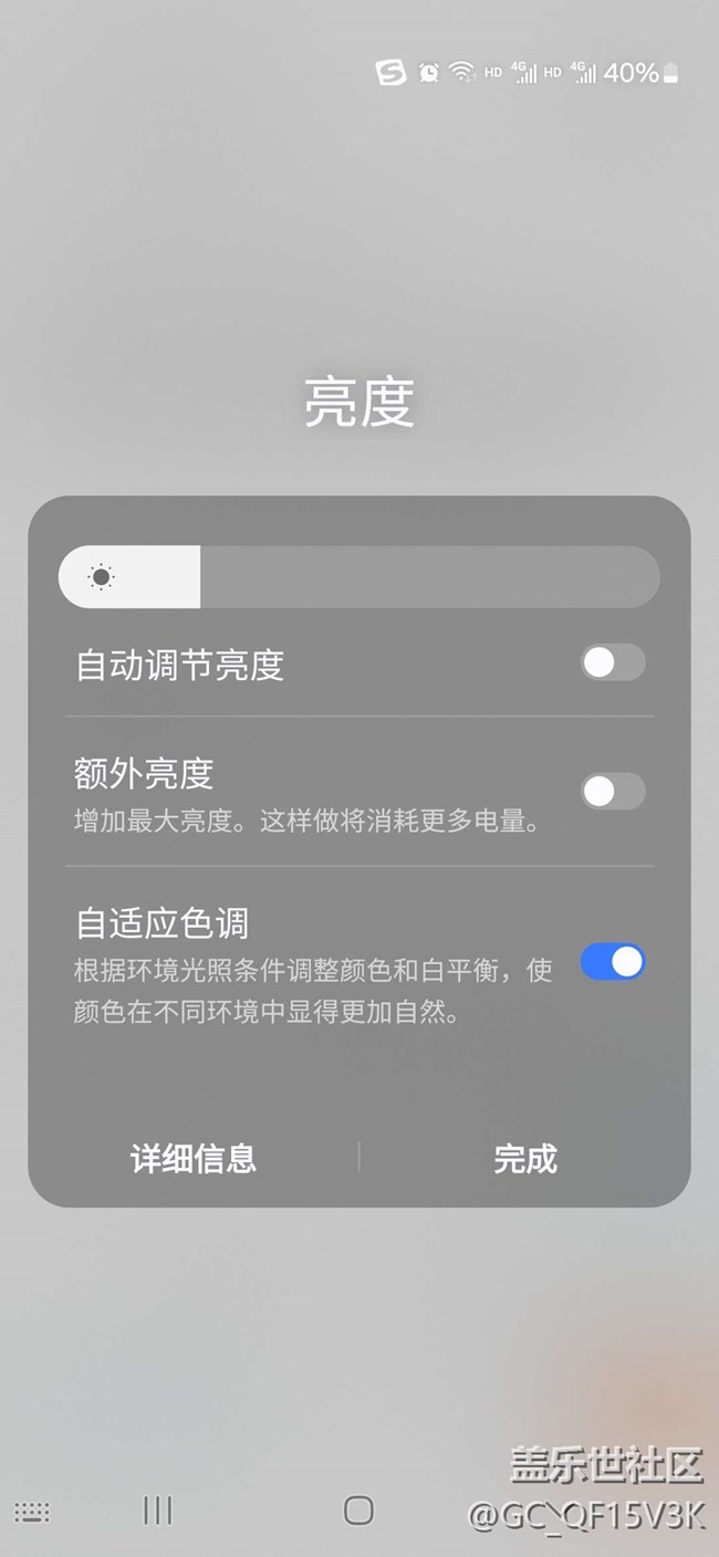 屏幕自動(dòng)亮度調(diào)節(jié)會(huì)經(jīng)常會(huì)自動(dòng)關(guān)閉,使用過程中會(huì)突然發(fā)現(xiàn)屏幕亮度沒有跟隨環(huán)境光變化而變化,點(diǎn)開亮度調(diào)節(jié)發(fā)現(xiàn)自動(dòng)亮度調(diào)節(jié)自動(dòng)關(guān)閉,自動(dòng)關(guān)閉后再次打開使用一段時(shí)間后,又會(huì)自己自動(dòng)關(guān)閉,無法自動(dòng)調(diào)節(jié)屏幕亮度,有一樣情況的小伙伴嗎