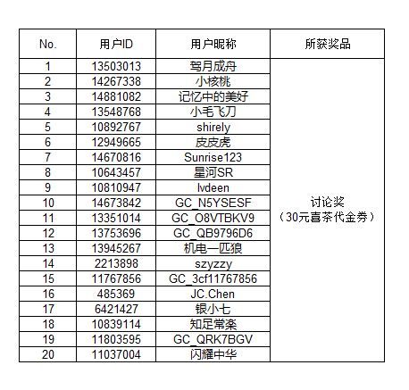 在所有帖子下方回復(fù)討論的用戶中隨機(jī)抽取討論獎(jiǎng)20人,每人獲得30元喜茶代金券一份