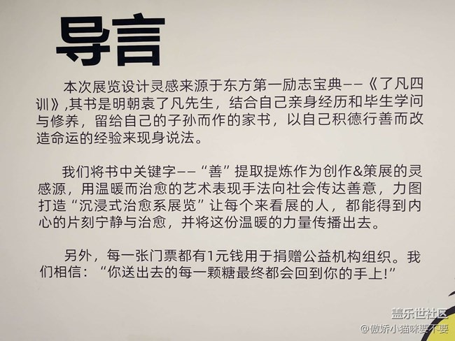 今天看展很特別,主打一個輕松,特別治愈。展覽是根據(jù)了凡四訓來做主題,只要自己快樂,其他都不重要