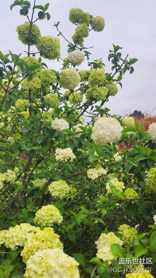 紅楓與繡球 圖片