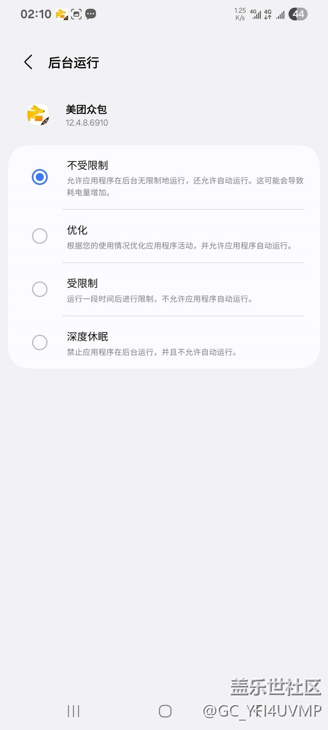 1、設(shè)置 -> 搜索智能管理器 -> 應(yīng)用程序管理 -> 找到美團(tuán)眾包app并點(diǎn)擊進(jìn)去 -> 后臺(tái)限制 -> 勾選不受限制