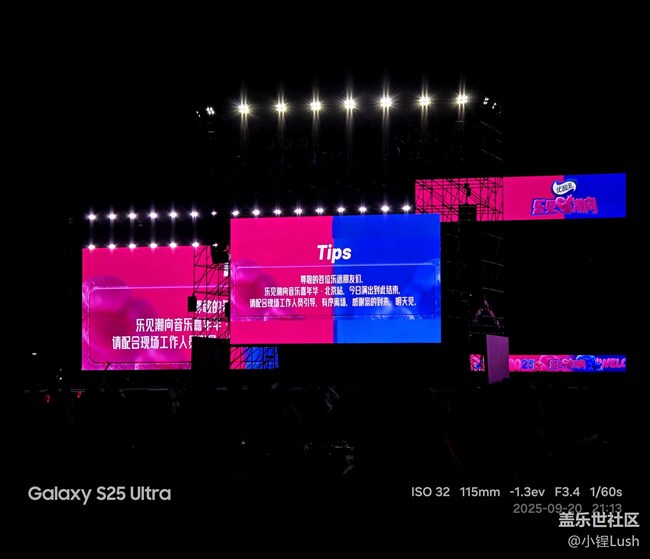 這次能和大家一起參加蓋樂世社區(qū)活動,真的是一段難忘的經(jīng)歷,從午后到夜晚,星部落音樂嘉年華的現(xiàn)場充滿了光影與節(jié)奏的交織,大家的熱情,舞臺前人群的歡呼,每一個細節(jié)都讓人沉浸其中。Galaxy S25 Ultra 記錄下每一個動人的瞬間,無論是逆光下的舞臺,還是夜幕里燈海閃爍,都被真實還原。