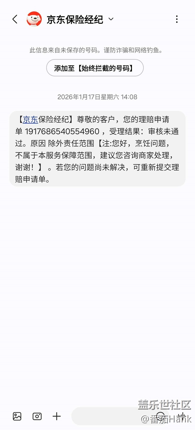 第一時間找商家,發(fā)消息不回打電話不接,直接裝死;找京東外賣客服投訴,就讓走食安保,我把黑糊雞柳原圖傳上去,居然說未見異常給我拒賠了!