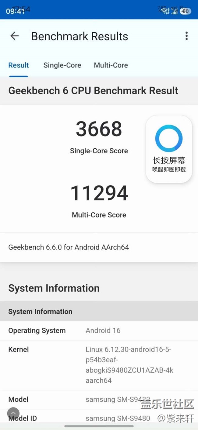 Galaxy S26 Ultra室溫下跑分,單核3668 圖片