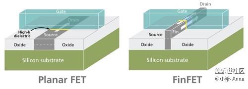 其實早在10多年前,就有人提出FinFET這個結(jié)構(gòu),FinFET主要重新設(shè)計了晶體管里面的S/D兩級以及最為關(guān)鍵的Gate結(jié)構(gòu)(什么是S/D/Gate今天不說,不然文章起碼要多2000字),讓Gate對通/斷的控制力更強,也就是在更先進(jìn)的制程節(jié)點上,減少S/D兩級之間的漏電流,而漏電流會直接影響處理器的功耗。而驍龍810的20nm HKMG工藝,就是Gate控制力低下(對于20nm節(jié)點),導(dǎo)致漏電問題嚴(yán)重,所以發(fā)熱以及功耗得不到良好的控制。