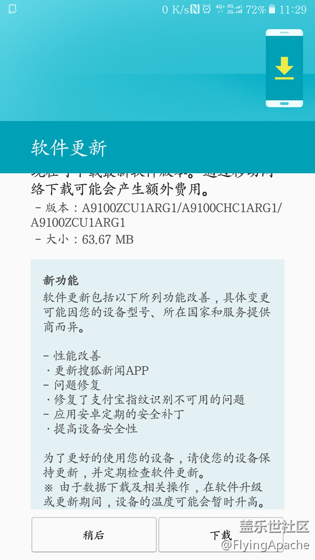 三星A9100收到指紋修復(fù)推送 圖片