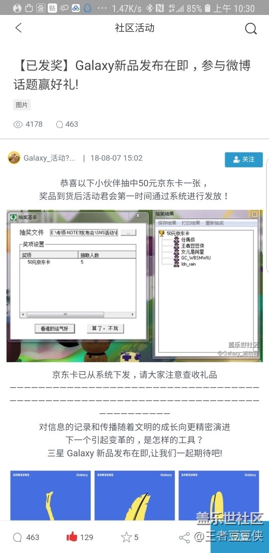 感謝蓋樂世社區(qū),會繼續(xù)支持三星! 圖片