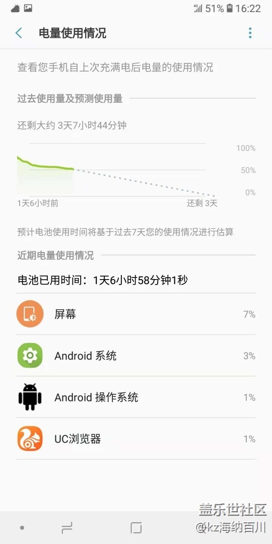 這次手機(jī)續(xù)航(待機(jī))能力真是驚艷到我了。。。拿到體驗(yàn)機(jī)時(shí)的電量為66%,第一天只掉了8%電量,經(jīng)過(guò)一天、兩天、三天、四天。。。。電量才耗至7%(如下圖),三星這次的續(xù)航能力真是讓我刮目相看了。。。
