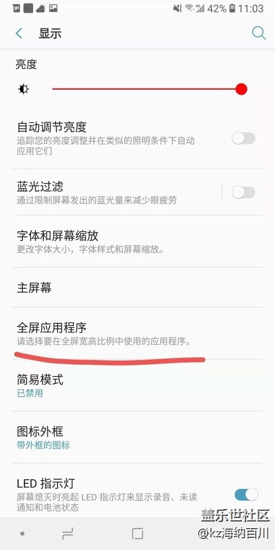 3、打開(kāi)設(shè)置在顯示這一欄,A6S對(duì)比多了個(gè)全屏應(yīng)用程序,卻沒(méi)有屏幕模式顯示和分辨率的調(diào)整(上:A6s 下:s7)