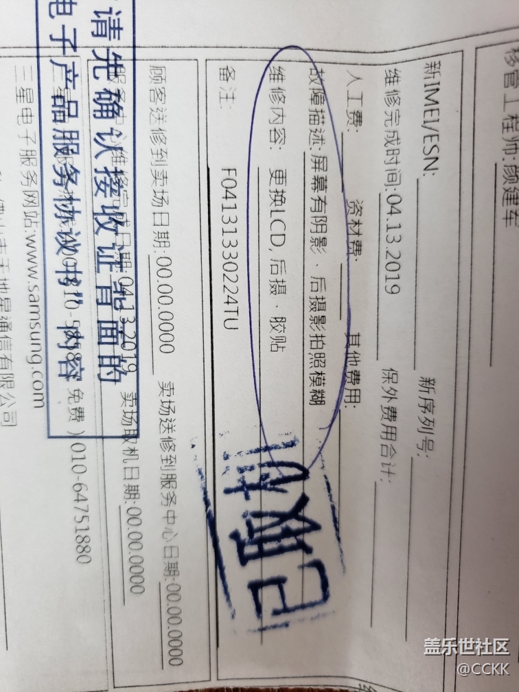 昨天發(fā)帖問是不是燒屏,去售后了,順便把偶爾出現(xiàn)變焦震動(dòng)模糊的攝像頭也換了,上年12月?lián)Q了攝像頭,今年現(xiàn)在換屏幕和攝像頭。保修期內(nèi)攝像頭再一次更換的話就可以換手機(jī)(三包政策,同一問題維修三次就可以換新機(jī))   看圖片,我覺得我在集齊換機(jī)單一樣。。不過其實(shí)也不想換,資料太多了。對(duì)了,換屏幕原來把電池和很多東西也換了,怪不得換屏這么貴,下圖的屏總成全換。