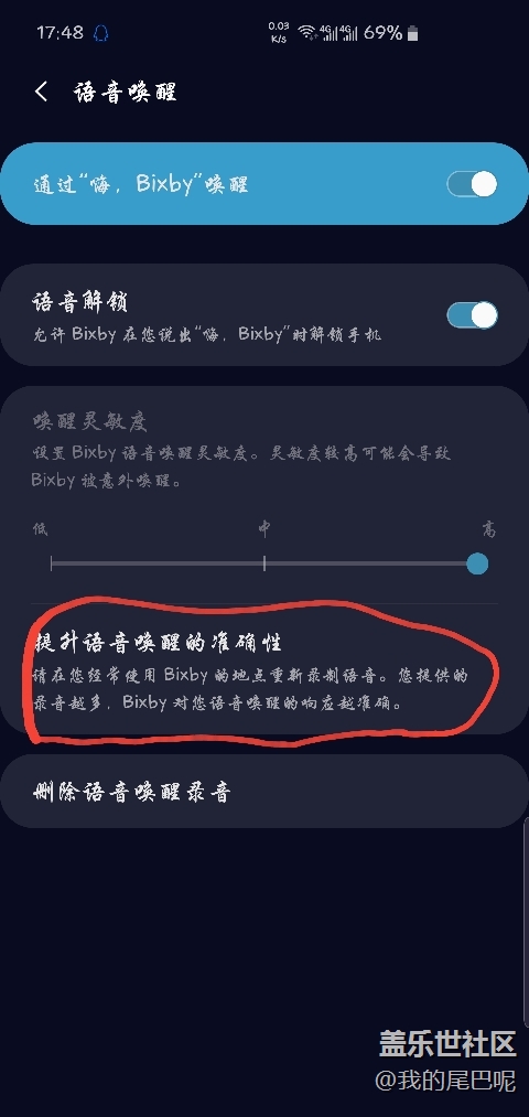 今天已經(jīng)看到幾個(gè)帖子說(shuō)不能在在語(yǔ)音喚醒bixiby的時(shí)候解鎖了,關(guān)于這個(gè)問(wèn)題給大家分享下自己的設(shè)置,重點(diǎn)在畫(huà)圈那里,我一開(kāi)始的時(shí)候也遇到過(guò)語(yǔ)音無(wú)法解鎖的情況,后來(lái)我發(fā)現(xiàn)這和自己的錄音有關(guān)系,bixiby會(huì)區(qū)別不同的語(yǔ)氣和聲調(diào),如果你平時(shí)說(shuō)話的語(yǔ)氣不在解鎖錄音里面的話都是只能喚醒,但是不能解鎖的,建議大家多錄一些不同語(yǔ)氣和聲調(diào)的錄音,我自己用的話幾乎是百分百喚醒解鎖的,還有記得進(jìn)應(yīng)用商店里先把關(guān)于bixiby所有的程序都更新了在設(shè)置