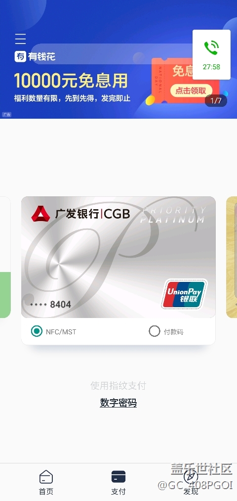 三星pay的銀行卡支付不顯示指紋識別 圖片