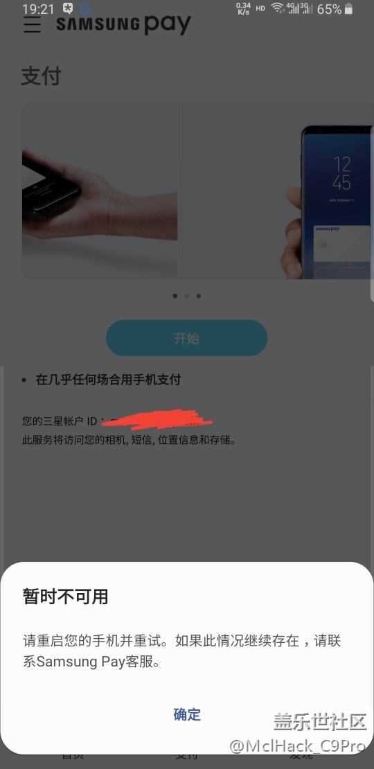 Samsung pay 升級后一直不能用