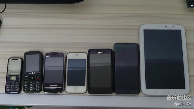 廢了好大勁,終于搜集齊了,剛好七個,葫蘆七兄弟團聚了,大家都認識這些機子嗎?從左往右(按屏幕尺寸從小到大)依次是:三星SCH-B309(諾基亞王者時代的三星功能機)、展翼FLY-E6C(諾基亞天下的國產(chǎn)功能機)、LenovoA60(聯(lián)想早期智能機)、iphone4S(一代經(jīng)典不解釋)、LG-P920(LG旗下的裸眼3D手機)、三星S7edge(大家都認識,目前國行最美機型)、三星N5100(三星的一款7英寸可插卡通話平板,就像note系列放大版)。還有就是這些手機都是好的,都能用。待機畫面如下圖: