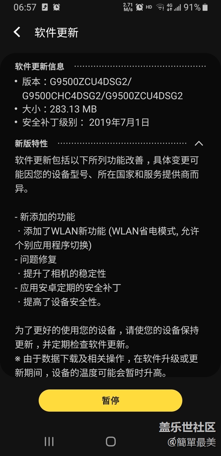 帖子名稱 最近幾個(gè)月S8的更新推送還是挺及時(shí)的。雖然沒(méi)什么改變,。