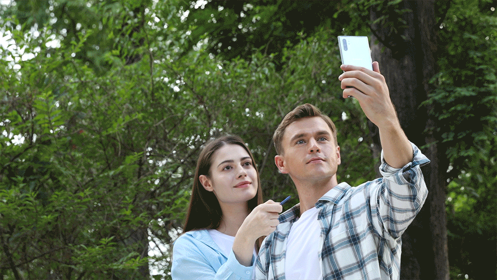 其次,三星給Note10的S Pen加入了空中手勢(shì)的操作——在按下S Pen筆身上的按鈕后,左右滑動(dòng)可以切換相機(jī)模式或者是切換上一首/下一首曲目;上下滑動(dòng)可以切換前后置攝像頭或是調(diào)整音量大??;順逆時(shí)針旋轉(zhuǎn)可以放大縮小相機(jī)畫(huà)面或者旋轉(zhuǎn)(切換)畫(huà)面角度,切換角度僅用于自拍、實(shí)時(shí)虛化、全景模式。以上的這些空中手勢(shì)一定是先按下筆身按鈕,做出對(duì)應(yīng)動(dòng)作之后再松開(kāi)按鈕才能實(shí)現(xiàn)。