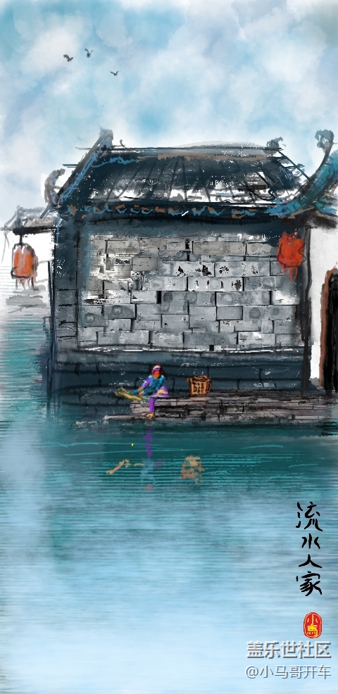Spen畫(huà)作《流水人家》