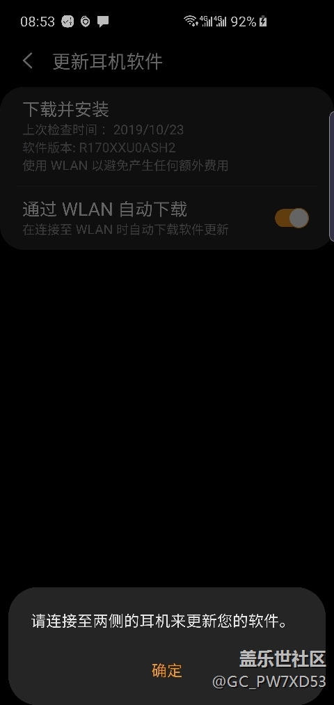 然而,在使用單耳機的過程中問題也就來了,在使用過程中發(fā)現(xiàn)耳機固件可以更新,但提示說必須要連接雙耳機才能更新,那也就意味著單耳機將無法正常使用軟件更新功能,而之前問了售后單耳機又不能配,所以說要完整使用耳機功能就要在重新買一副了唄?這是不是有點那啥…