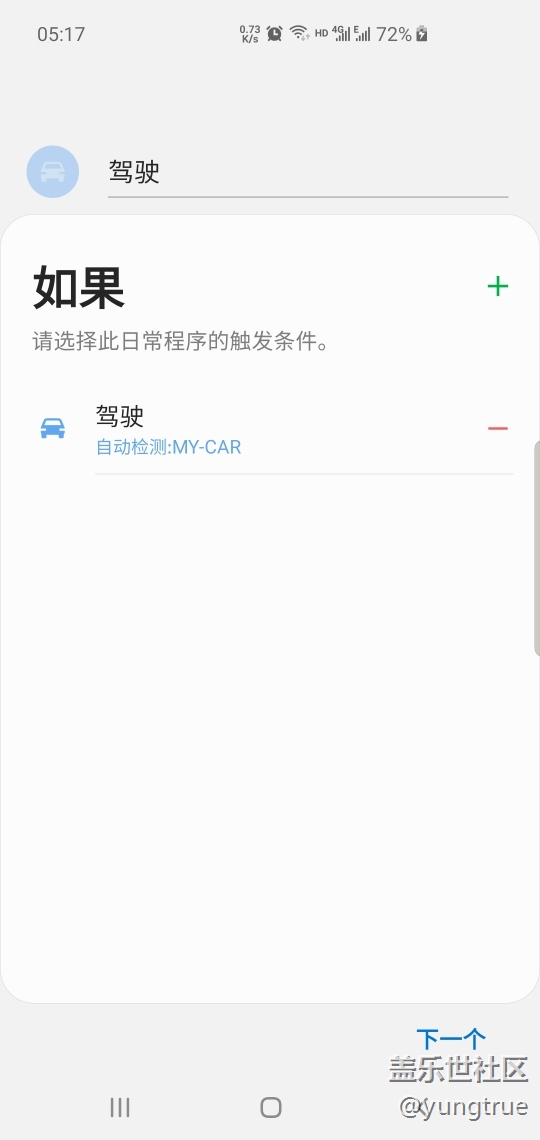 從上次更新后就不能觸發(fā)了,這次更新仍然如此,我清除了bixby數(shù)據(jù)后也不行,以前都能正常觸發(fā)的。明明藍(lán)牙連接了汽車(chē),但是駕駛模式就是不觸發(fā)啟動(dòng)?!叭绻睏l件那是程序默認(rèn)的情景為“駕駛”時(shí),就算手動(dòng)關(guān)閉再手動(dòng)打開(kāi),仍然不觸發(fā)啟動(dòng),就更別說(shuō)自動(dòng)觸發(fā)了。