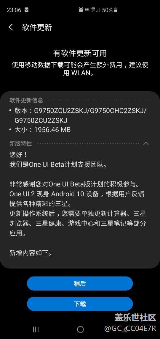 剛剛OTA更新,跳出來(lái)的,我真的搞不懂是內(nèi)測(cè)版還是正式版