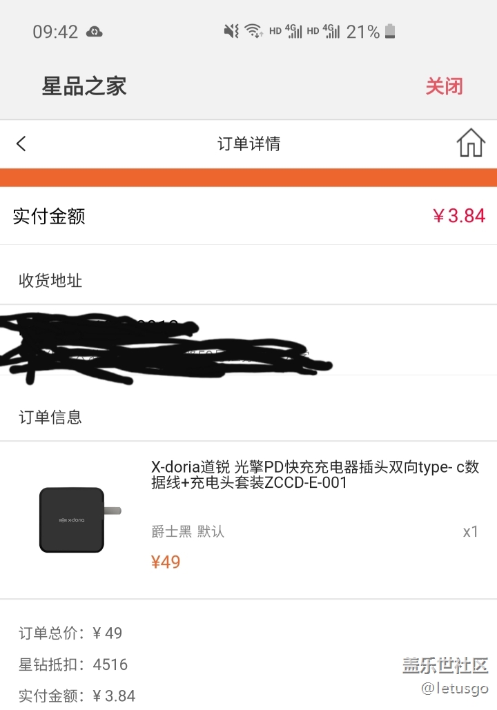 星品之家搜索充電器,有一個(gè)X-doria道銳,價(jià)值49元的充電器。這就是我用星鉆抵扣,最終花了3.84元買的