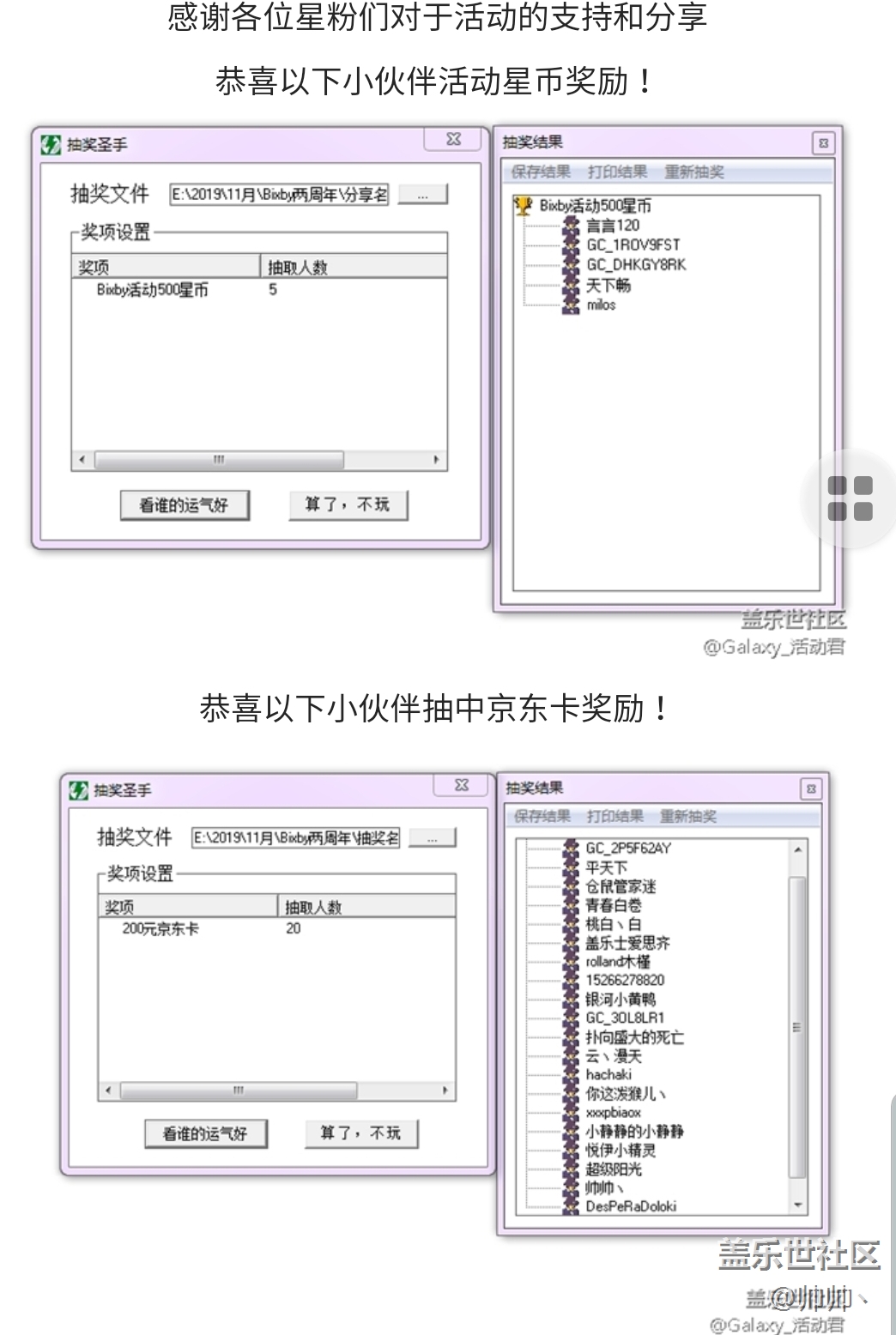 兩周年活動(dòng)開(kāi)獎(jiǎng)了