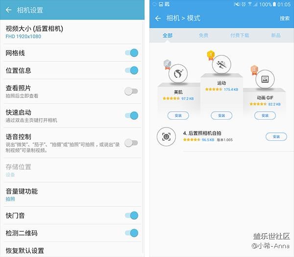 伴隨著拍照質(zhì)量的進步,三星手機的拍照界面同樣有了不少的改善,過往“臟亂差”的形象在這幾次的TouchWiz升級中得到了很大的改善,首先A9 Pro依舊保留了十分好用的雙擊Home鍵進入拍照的快捷開關(guān),其次主界面僅保留了幾個常用的功能選項,主要的模式選擇均被放置在二級菜單中以便于選擇,最后則是一些有意思但并非必備的功能做成了APP一樣的下載選項,讓所有用戶的個人意愿得到最大的體現(xiàn)。