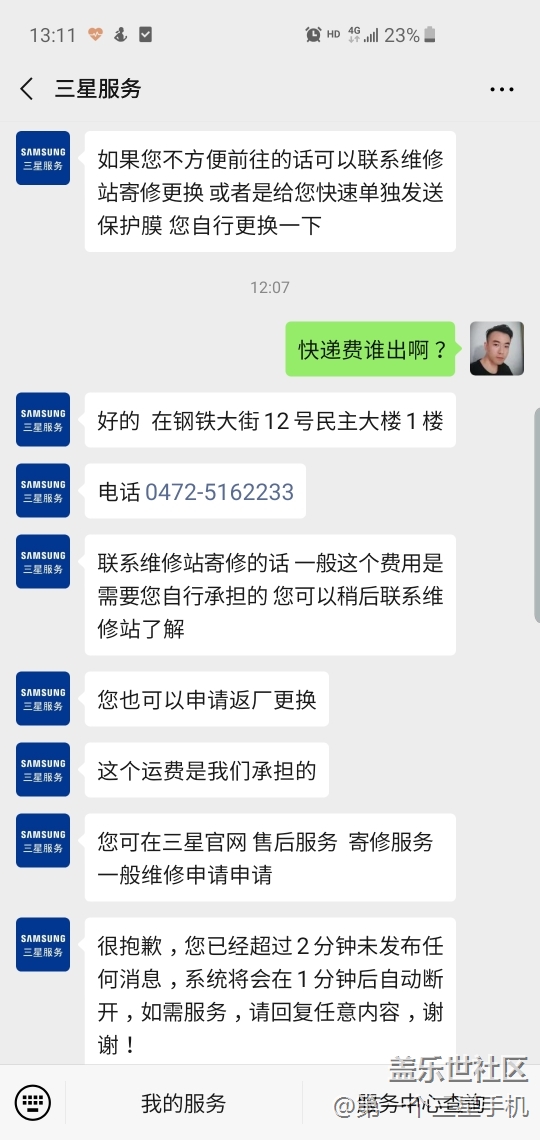 換原裝膜可以,和三星的售后對(duì)話 圖片