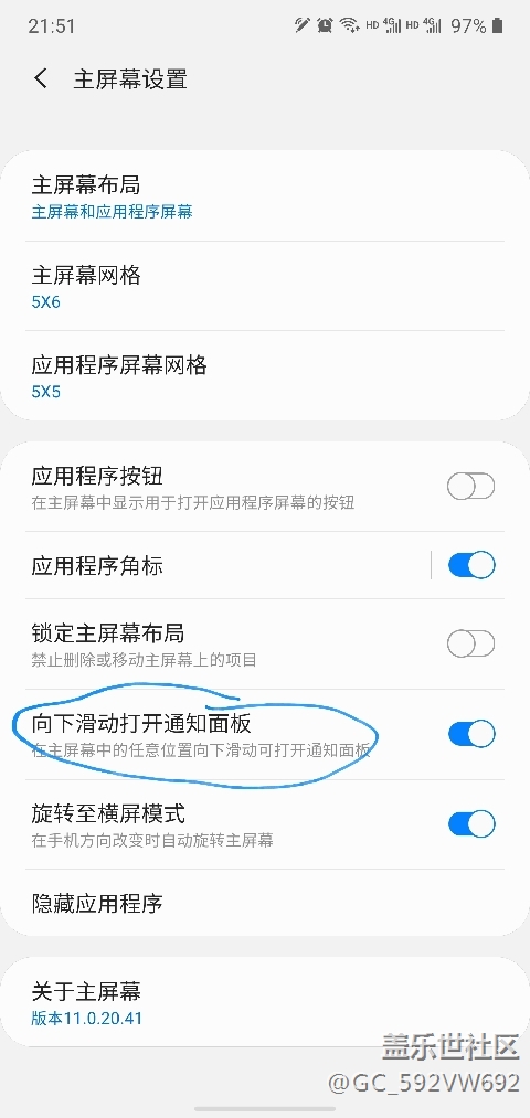 note10 更新ONE UI2.0之后,桌面任意位置下滑呼出通知欄的功能突然不能用了,選項還在,可以打開,就是打開之后不起作用,怎么辦?