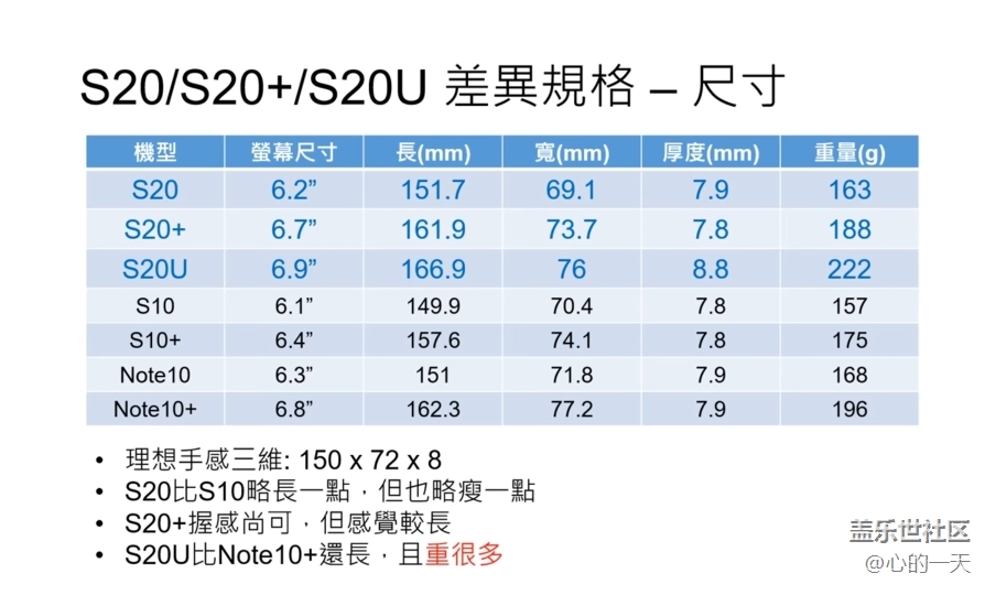 S20系列規(guī)格和前代(錢袋)比較 圖片