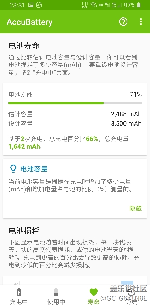 使用大9到現(xiàn)在差不多兩年了,蓋樂世社區(qū)人工檢查電池健康為:良好,第三方檢測電池耐久只有71%,估計(jì)容量2500毫安左右。想等疫情過后去售后更換電池了,不知道各位的手機(jī)現(xiàn)在電池如何……