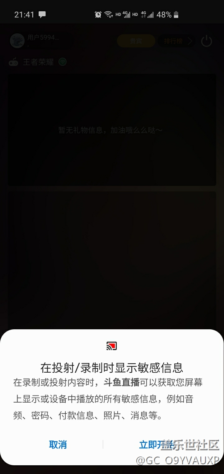 三星直播沒有錄制權(quán)限,如圖,只能點取消,點立即開始沒反應(yīng) 圖片