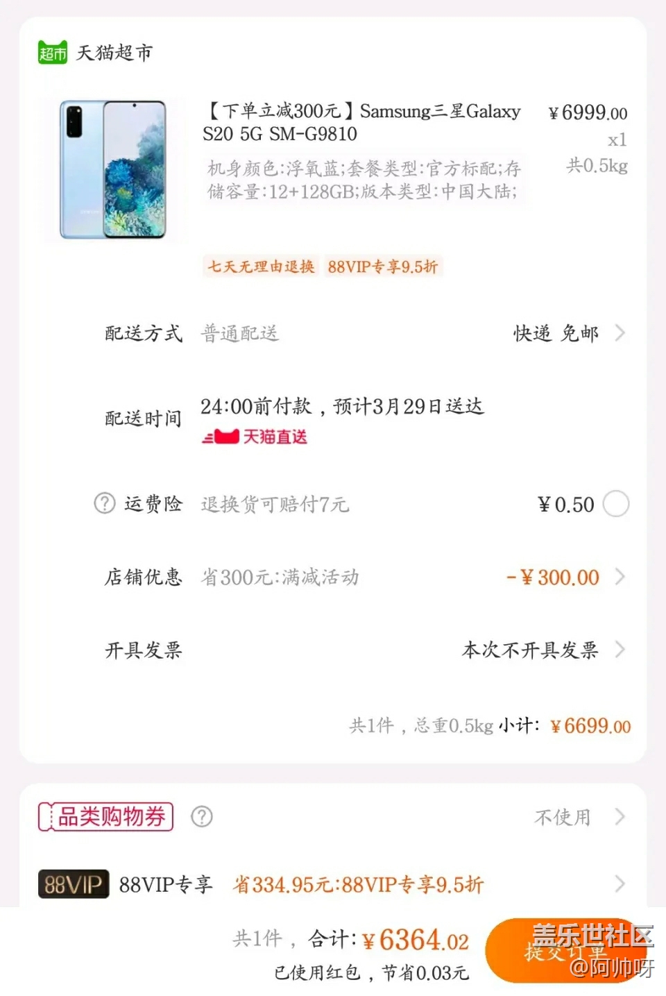 天貓超市88會(huì)員6100購(gòu)三星S20,7000購(gòu)S20 優(yōu)惠分析: