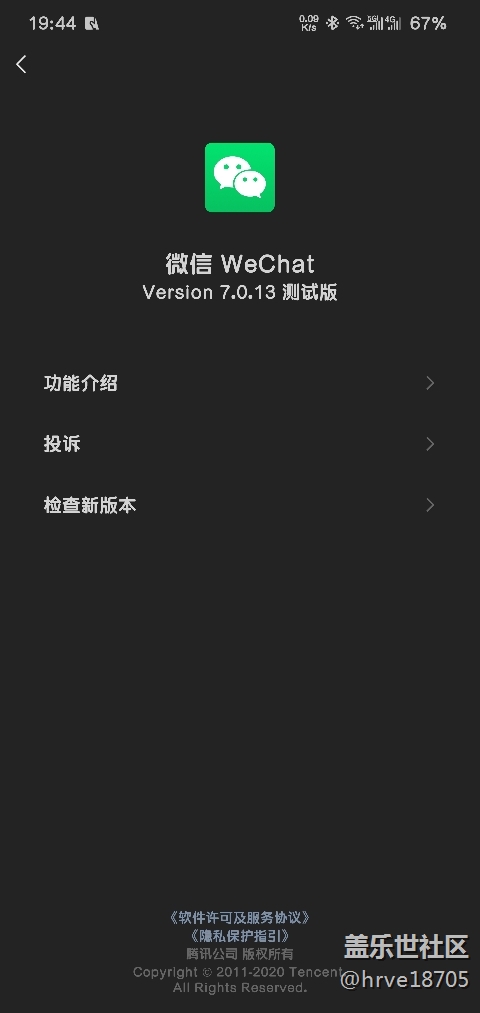 微信可以暗黑模式了 圖片