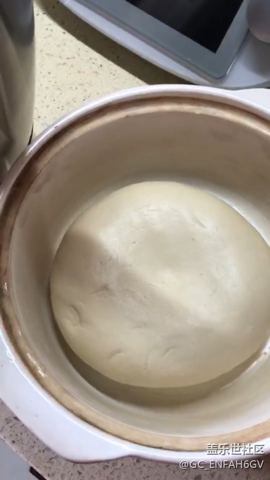 1??料理機(jī)按程序傻瓜揉面團(tuán),然后蓋上保鮮膜短暫醒發(fā)。妥