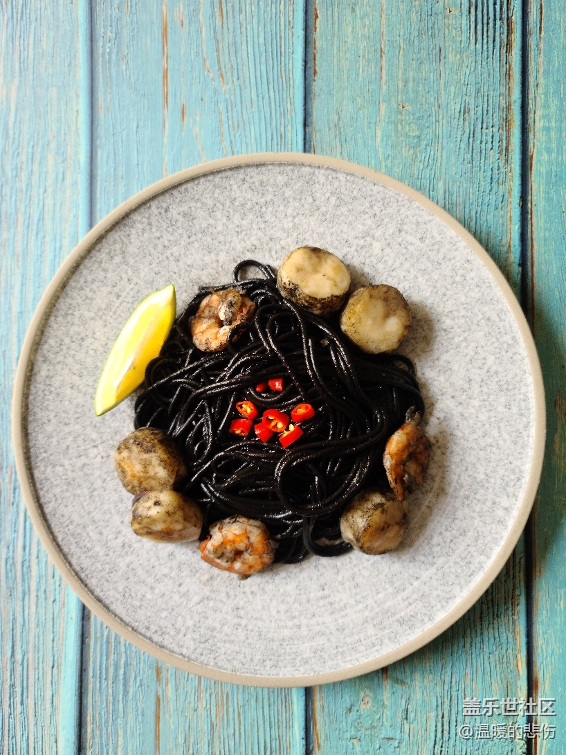 帶子洗凈用廚房紙吸干水分,蝦去皮去蝦線,檸檬汁在吃面時(shí)擠上可以提鮮
