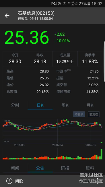 股市大跌,石基信息,我100多塊買(mǎi)進(jìn)去,大跌,再加高轉(zhuǎn)送,今天又吃了*,不知道幾部三星了