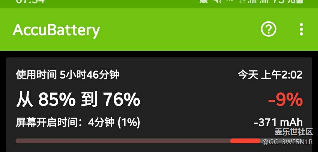 夜晚待機耗電,不到6小時耗電10% 圖片