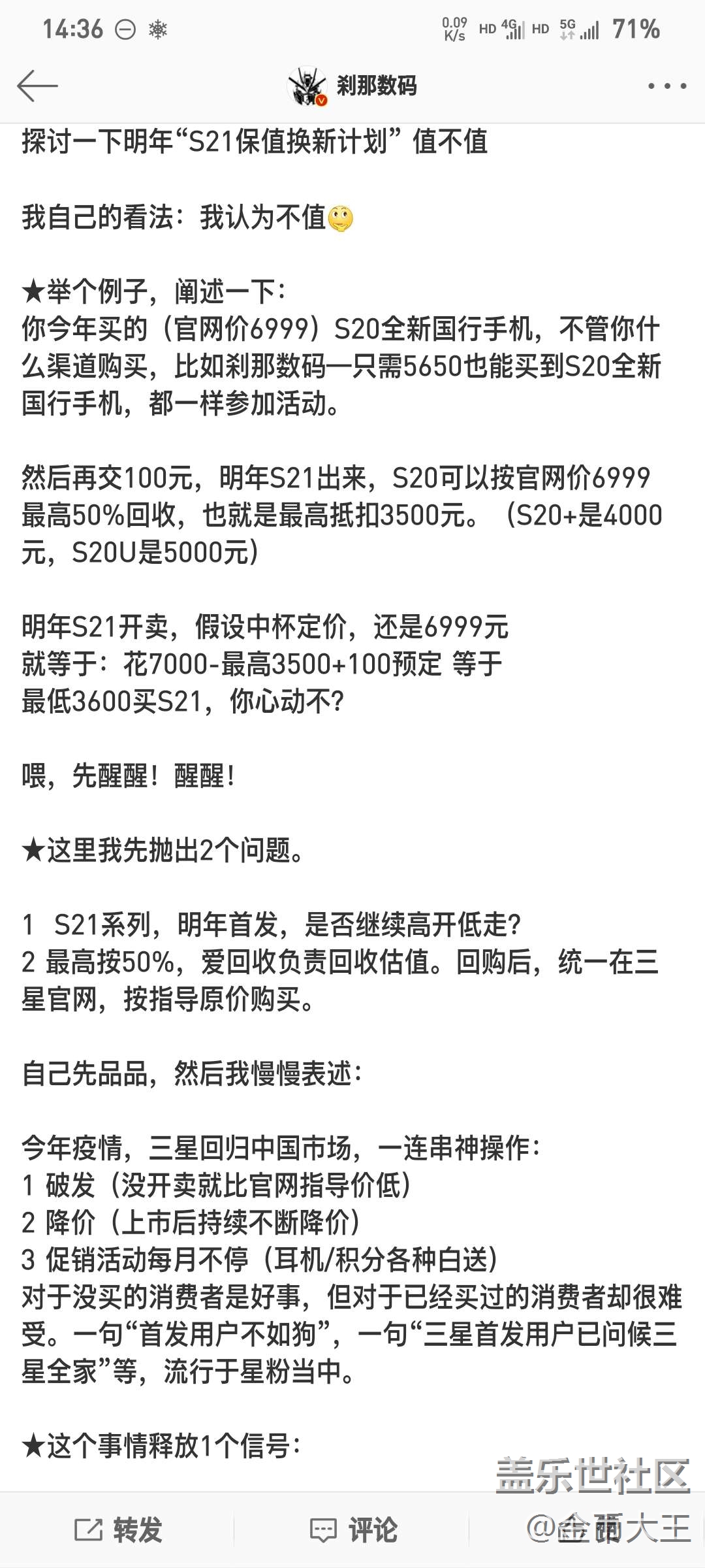 剎那數(shù)碼關(guān)于s21保值換新計(jì)劃的分析. 圖片
