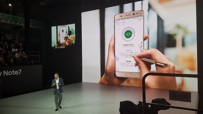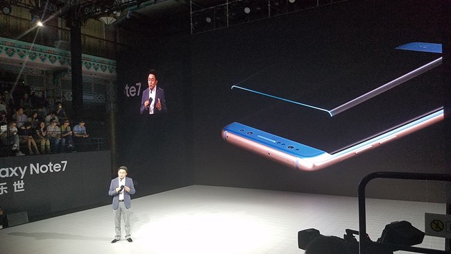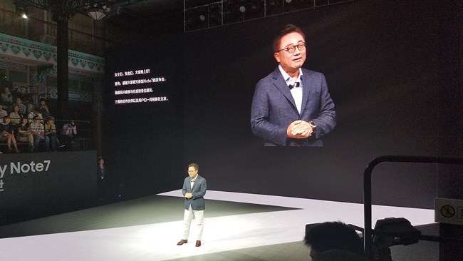 三星電子產(chǎn)品策略部總監(jiān)束燦開始介紹Note7這款產(chǎn)品