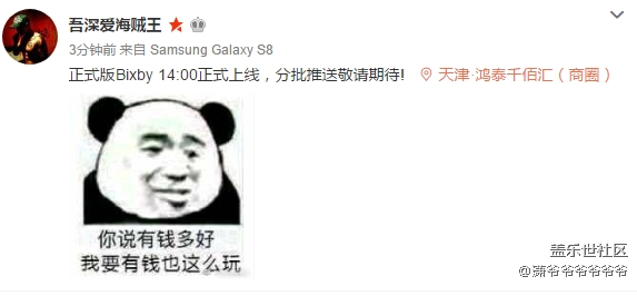 - Bixby自從2017年11月30日正式上線,在短短一個(gè)月時(shí)間里,僅中國(guó)大陸地區(qū)用戶,已經(jīng)突破百萬(wàn)啦!社區(qū)為大家準(zhǔn)備了豐厚的福利,記得一定參加哦~活動(dòng)鏈接:請(qǐng)點(diǎn)擊另外,如果大家對(duì)各家AI助手還有Bixby的玩法有什么的心得體會(huì)的話,可以到微博參與#逼格撕逼#的話題討論!只要在微博話題里上傳自己的相關(guān)作品(文章或視頻),然后在本帖回復(fù)相應(yīng)鏈接,我們后續(xù)將送出500星幣的獎(jiǎng)勵(lì)!歡迎參加哦